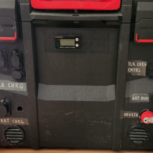 I chose a Craftsman Tradestack 22.5 inch system as the container for my DIY solar panel. The Craftsman Tradestack system is rugged, durable, has wheels and expandable. The battery, solar charger controller and all circuitry fit with ability for further expansion in the lower tool box. I bought the add-on Craftsman Tradestack briefcase to sit on top for the inverter, spare fuses, AC battery charger and power strip.