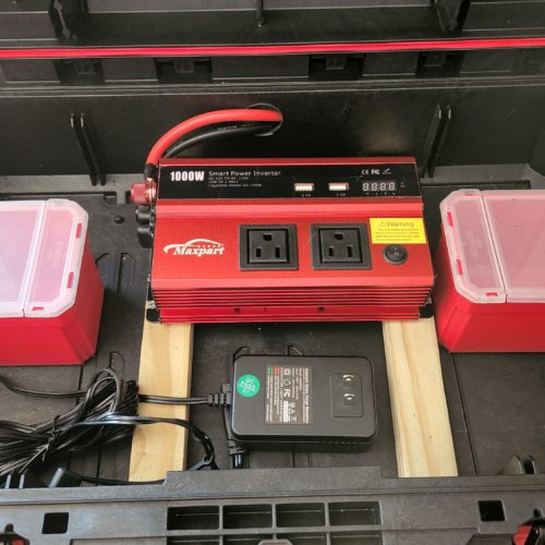 The next component of a solar generator is the inverter. Inverters convert DC to AC power. Inverters range in wattage from 500W to 3000W. For my needs, I chose a 1000W inverter to be able to provide power to fans, computers & laptop charging & small appliances.